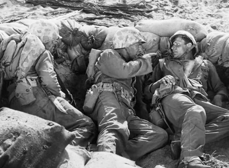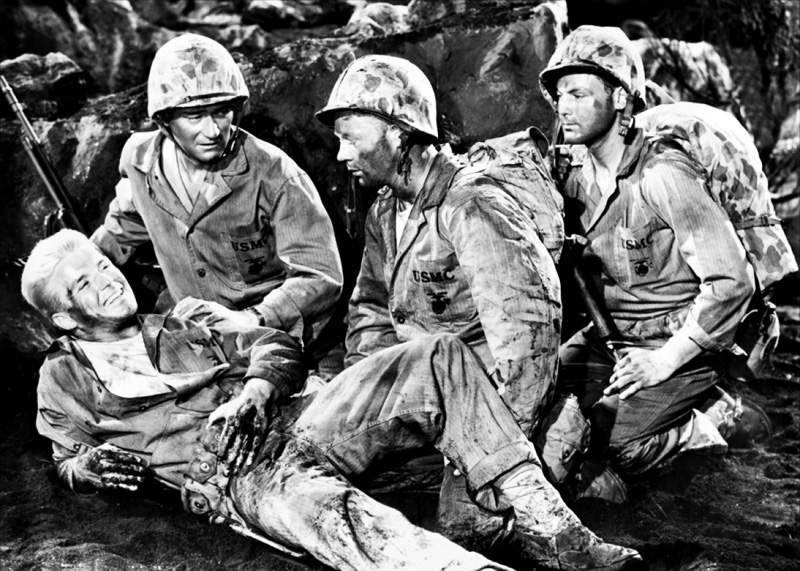 本片由《紅河谷》約翰韋恩主演,描述第二次世界大戰中,日軍於硫磺島與登陸美軍激戰的故事。 1944年6月,聯軍在諾曼第成扔n陸,成為聯軍戰勝的轉折點,美軍得以將戰力轉向太平洋,六月登陸塞班島,七月登陸關島,麥克阿瑟將軍隨即又第二度踏上菲律賓國土。日本死守硫磺島,軍力約兩萬一千人,美軍共出動三個師團75000人,艦船495艘,其他尚有驅逐艦,航空母艦等155艘,全力攻擊硫磺島。